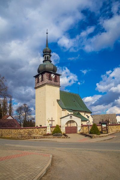 Architektura kostela je charakteristická gotickými prvky, jako je například osmiúhelníkové kněžiště podepřené gotickými podpěrami. Z původních raně gotických oken se dochovala pouze dvě. Zajímavostí kostela je dřevěná zvonice v patře věže a vstupní kamenný portál v jižní zdi lodi, který pochází z druhé poloviny 12. století.
