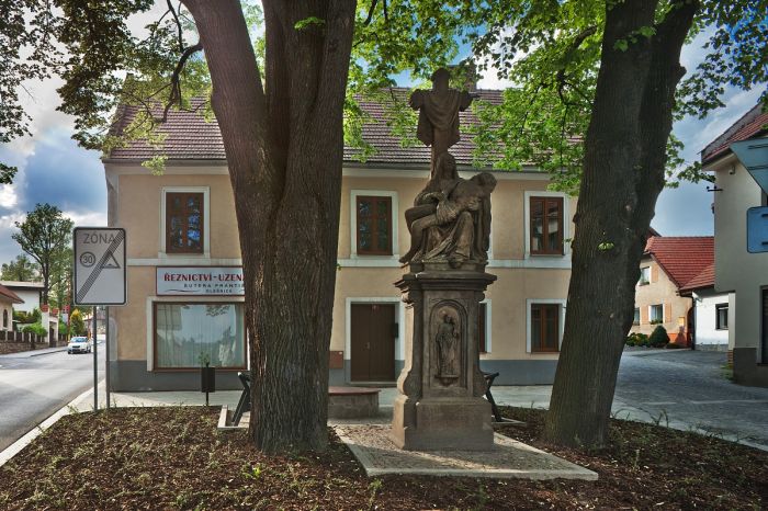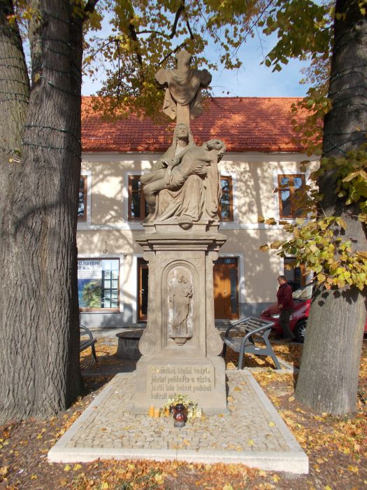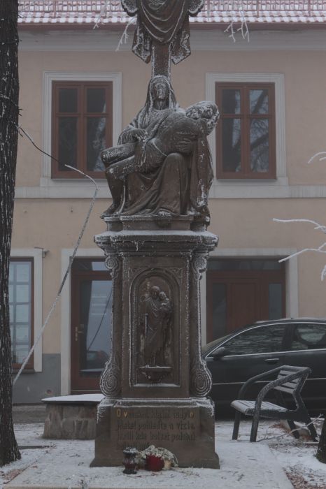 Pískovcová socha v horní části Masarykova náměstí v Bystřici nad Pernštejnem, autor neznámý, 1881. Základ této památky tvoří obdélníkový podstavec se zlaceným nápisem a vysoký sokl s profilovanou římsou, na němž je pod křížem umístěna realisticky pojednaná socha truchlící Panny Marie s mrtvým Ježíšem. Vysoký sokl je po obou stranách ozdoben volutami a uprostřed v oblouku vysokým reliéfem Josefa s Ježíškem.