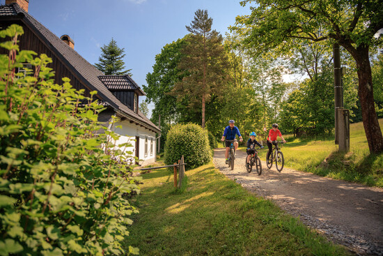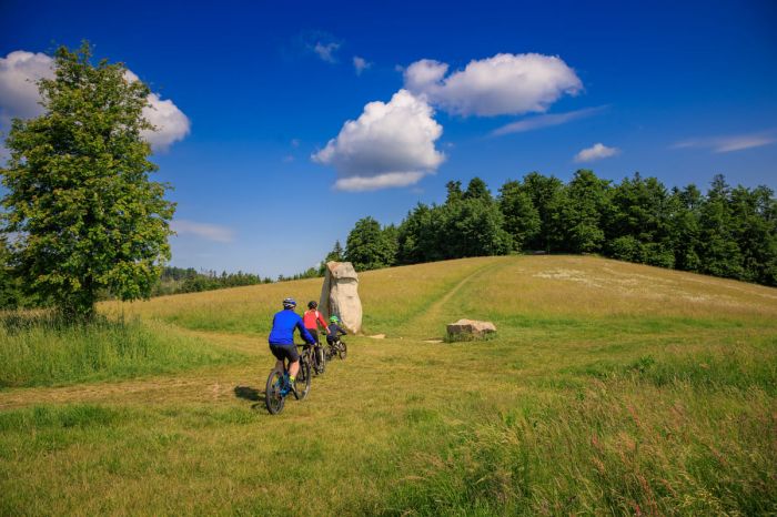Čtyřicet kilometrů dlouhá trasa vhodná pro gravelová či horská kola začíná v novoměstské Vysočina Areně. Nejdříve zamíří k nedalekému rybníku Koupaliště, v letní sezoně vyhledávanému ke koupání, pak stoupá lesem Ochoza, který je protkaný i singletrackovými trasami Cyklo arény Vysočina. Nabízejí pět stupňů obtížnosti a trať podle svého gusta si vyberou jak děti či začátečníci, tak zkušení jezdci vyznávající prudké sjezdy nebo skoky.