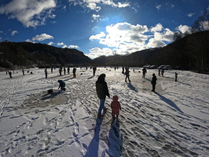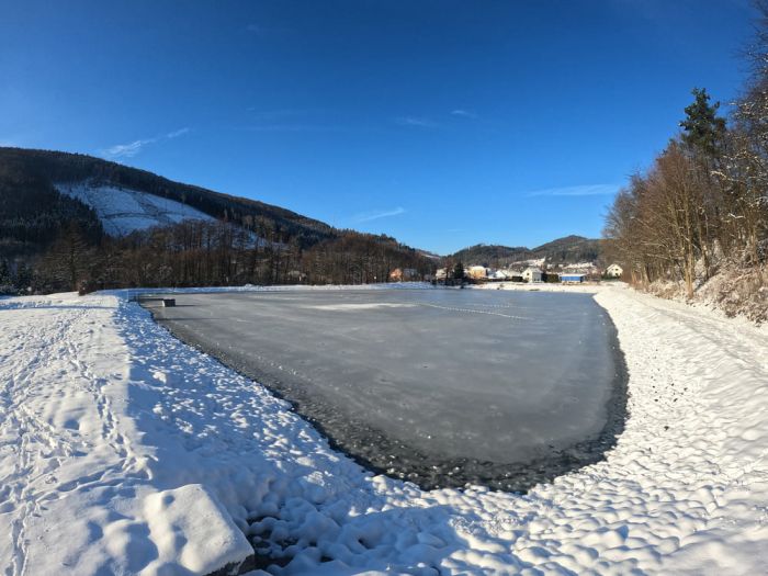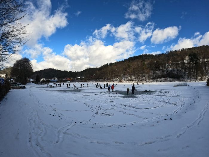Když pořádně přituhne, tak se stane Vojtův rybník ve Víru rájem pro všechny rybáře z okolí. V zimě tady i nečlenové rybářských svazů můžou vyzkoušet takzvaný lov na dírkách. A pokud nemáte patřičné vybavení na lov pstruhů duhových nebo sivenů amerických, můžete si jej půjčit i na místě.