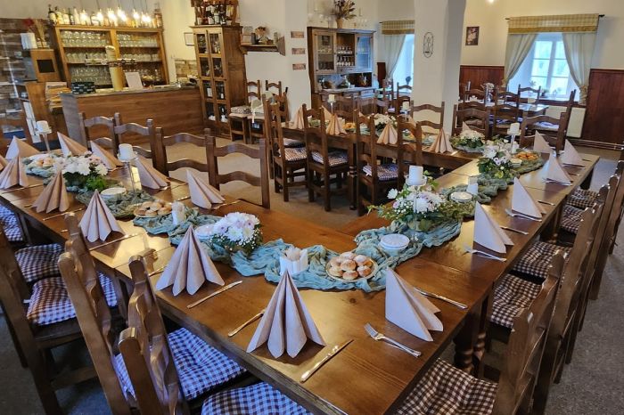 Hradní krčma na prvním nádvoří hradu Pernštejn i kavárna na terase, jež je její součástí, nabízejí hostům jedinečnou kombinaci vůní, chutí, historie a neopakovatelné atmosféry. Pokud hledáte zajímavé místo, kde si v klidu vychutnáte skvělé jídlo a zároveň se ponoříte do historie, dále již hledat nemusíte. Restaurační zařízení po rozsáhlé rekonstrukci v roce 2024 získalo moderní vzhled, aniž by však ztratilo původní historický punc. Výsledkem je příjemné a útulné prostředí, kde si hosté mohou pochutnat na tradiční české kuchyni, ovšem s důrazem na moderní způsoby přípravy a prezentace podávaných pokrmů.