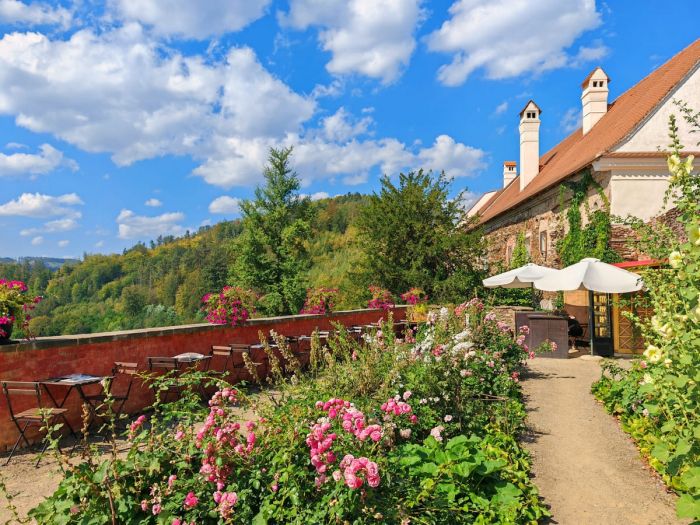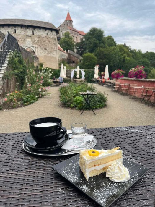 Pokud mají hosté chuť na lehčí občerstvení, nebo se touží uvolnit, odpočinout si a relaxovat u šálku dobré kávy, v sezoně mají možnost navštívit přilehlou kavárnu na terase s jedinečným výhledem na okolní přírodu a mohutné pernštejnské věže. Vybírat si mohou z rozsáhlé nabídky kávových specialit doplněných domácími dezerty z kvalitních lokálních surovin, domácích limonád i speciálních sezonních nápojů.
