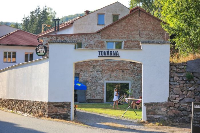 Sezonní Hospoda situovaná do atraktivně obnovených prostorů bývalé kotelny je v provozu od dubna do října a v létě je možné využít i restaurační zahrádku na továrním dvoře, odkud je vidět na vyhlídku na impozantní skále Klubačice tyčící se nad areálem. Poloha u silnice vedoucí přes přehradní hráz a v těsné blízkosti ferrat zařízení dodává nádech „zájezdního hostince“, kde se pocestný občerství, případně i vyspí a zase pokračuje dál.