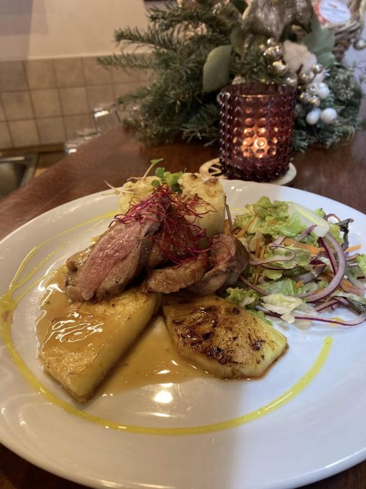 Hotelová restaurace s kapacitu 60 míst, nabízí pravidelné menu, které je pravidelně obměňováno. Restaurace nabízí i slónky, které lze ji využít k oslavám, školení, svatbám atd. Návštěvníci restaurace mohou v létě využít krytou zahrádku a pro děti je připraven velký hrací koutek s perfaktním vybavením.