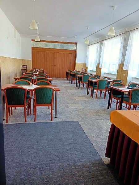 Restaurace s kapacitou 65 míst s možností rozšíření o taneční sál (dalších 35 míst).