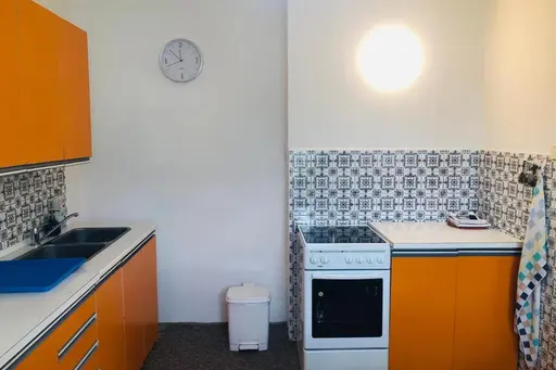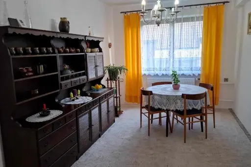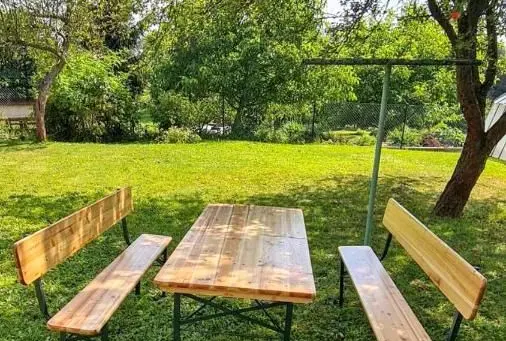 Z obývacího pokoje se vychází na balkon, který nabízí výhled do naší klidné zahrady, ideální pro posezení s přáteli nebo rodinou. Jídelní část je propojená s plně vybavenou kuchyní, kde najdete elektrický sporák s troubou, mikrovlnnou troubu, rychlovarnou konvici, lednici s mrazákem a jídelní stůl. Vše je připraveno tak, abyste si mohli snadno připravit jídlo a užít si ho v pohodlí apartmánu.