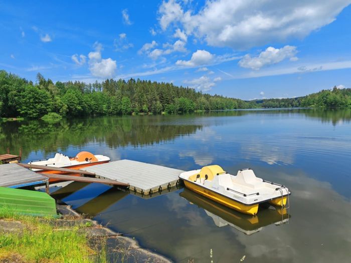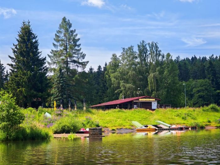 Chatky a místo pro stany se nachází v malebném údolí uprostřed lesů u Domanínského rybníka poblíž Bystřice nad Pernštejnem (cca 5 km). Nabízíme ubytování v 7 čtyřlůžkových chatkách v příměstské rekreační oblasti u Bystřice nad Pernštejnem. Dále je zde možnost ubytování v kempu. Celý areál se nachází u rybníku vhodného ke koupání a rybolovu. V místě se nachází stánek s rychlým občerstvením. V areálu se nachází víceúčelové hřiště a dětské hřiště. Dále je zde také možnost zapůjčení loděk a šlapadel.